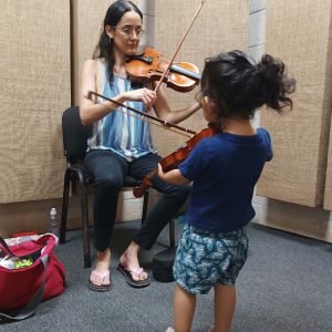 Ambos estudiamos en el Conservatorio Nacional de Música y contamos con formación en la metodología Suzuki, especialmente efectiva para el desarrollo musical en tanto en niños como en jóvenes y adultos.